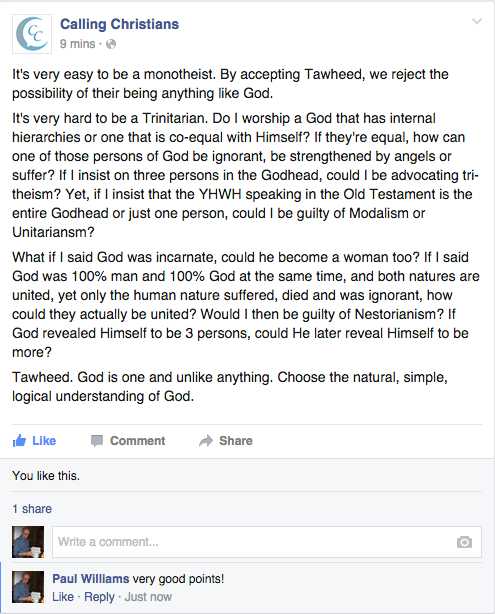 “That’s very dangerous thinking Robert, be careful. Many American Christians are making dumb statements about Trinity and logic. The so-called laws of logic are no made-up laws but basically that what makes sense and what doesn’t. If you say logic does not apply to God then something regarding God does not have to make sense and so God is not existing. That is Kufr to believe Robert.”