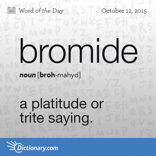 What bromides do you find yourself uttering? By paulwilliamsbloggingtheologycom on October 12, 2015 • ( 0 ) Share this:Share Click to share on Facebook (Opens in new window) Facebook Click to email a link to a friend (Opens in new window) Email Click to share on WhatsApp (Opens in new window) WhatsApp Click to share on Tumblr (Opens in new window) Tumblr Click to share on X (Opens in new window) X Like Loading...‹ Muhammad contra ISISAnd now for something completely different… ›Categories: Words