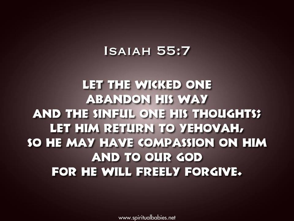 You have to accept Isaiah chapter 53 for Isaiah 55:7 to be possible. Without God’s grace and His substitutionary atonement for you, there is no real power to truly repent and turn to God.