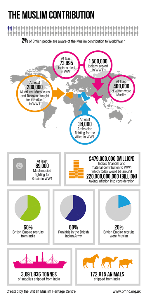 Today marks the armistice signed by the Allies of World War I (WWI) and Germany at Compiegne, France, for the cessation of hostilities on the Western Front of WWI. However, it is important to note that hostilities continued in other regions of the world, especially across parts of the old Ottoman Empire where many more thousands (mostly Muslims) perished.Today, we remember all those who fought and died for Britain including the 400,000 Muslims who fought and the 89,000 Muslim Soldiers who died for Britain in WWI.