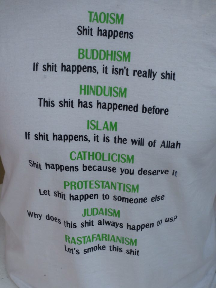 Comparative religion: advanced course By paulwilliamsbloggingtheologycom on January 23, 2016 • ( 0 ) Share this:Share Click to share on Facebook (Opens in new window) Facebook Click to email a link to a friend (Opens in new window) Email Click to share on WhatsApp (Opens in new window) WhatsApp Click to share on Tumblr (Opens in new window) Tumblr Click to share on X (Opens in new window) X Like Loading...‹ Hey Muslims, why don’t you tell ISIS to stop?The next President of the United States? ›Categories: Silly