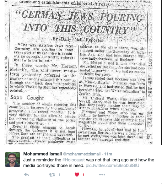 Just a reminder the Holocaust was not that long ago and how the media portrayed those in need. By paulwilliamsbloggingtheologycom on January 27, 2016 • ( 0 ) some things never ever change… Share this:Share Share on Facebook (Opens in new window) Facebook Email a link to a friend (Opens in new window) Email Share on WhatsApp (Opens in new window) WhatsApp Share on Tumblr (Opens in new window) Tumblr Share on X (Opens in new window) X Like Loading...‹ Jesus idolatryGalatians 2:21 vs Luke 1:6 – which is telling the truth? ›Categories: Extremism, Life in the West