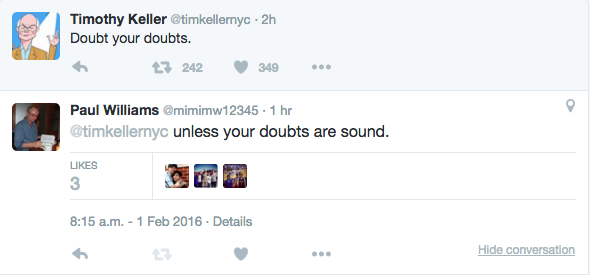 “Doubt your doubts”…in other words…don’t think, just believe and everything will be fine”.