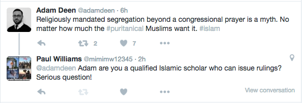 Adam’s post there was dumb. Segregation when praying isn’t really puritanical. Even from a secular perspective it makes sense. Fit girls attract boys and vice versa! If I saw my now wife whilst praying I might have been distracted it’s only natural!