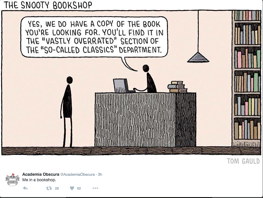 The snooty bookshop By paulwilliamsbloggingtheologycom on April 23, 2016 • ( 0 ) Share this:Share Click to share on Facebook (Opens in new window) Facebook Click to email a link to a friend (Opens in new window) Email Click to share on WhatsApp (Opens in new window) WhatsApp Click to share on Tumblr (Opens in new window) Tumblr Click to share on X (Opens in new window) X Like Loading...‹ What does it mean that you’re a Muslim and not a Christian?Who can he mean I wonder? #2 ›Categories: Books, Silly