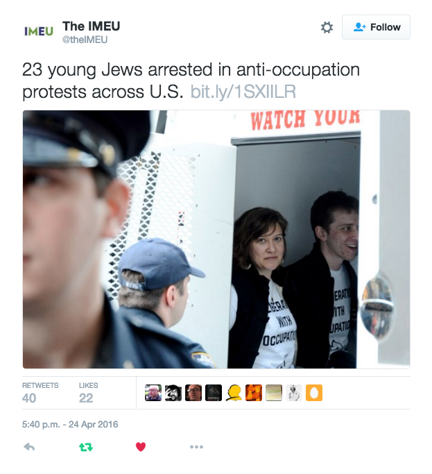 Heros By paulwilliamsbloggingtheologycom on April 25, 2016 • ( 0 ) http://972mag.com/23-young-jews-arrested-in-anti-occupation-protests-across-u-s/118807/?utm_content=bufferdbbf8&utm_medium=social&utm_source=twitter.com&utm_campaign=buffer Share this:Share Click to share on Facebook (Opens in new window) Facebook Click to email a link to a friend (Opens in new window) Email Click to share on WhatsApp (Opens in new window) WhatsApp Click to share on Tumblr (Opens in new window) Tumblr Click to share on X (Opens in new window) X Like Loading...‹ Biblical Offerings vs. Christian DoctrineHow Jesus Became God – Parts 1,2 and 3 ›Categories: Palestine