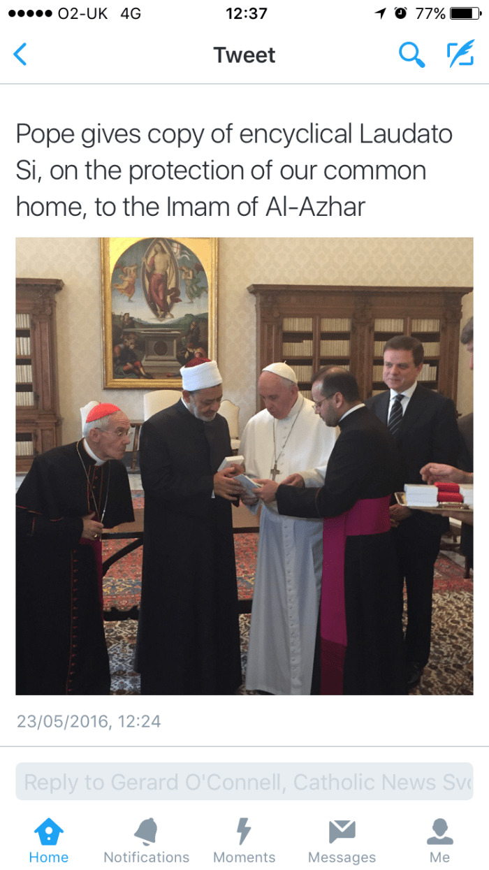 Such a change from previous Popes By paulwilliamsbloggingtheologycom on May 23, 2016 • ( 0 ) Share this:Share Click to share on Facebook (Opens in new window) Facebook Click to email a link to a friend (Opens in new window) Email Click to share on WhatsApp (Opens in new window) WhatsApp Click to share on Tumblr (Opens in new window) Tumblr Click to share on X (Opens in new window) X Like Loading...‹ Bomb Science 101Reality. Refugee crisis. ›Categories: Islam