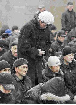 an old man says duaa, sitting in the snow.