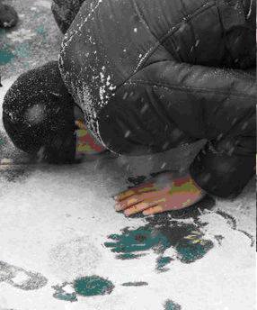 praying patiently in the falling snow