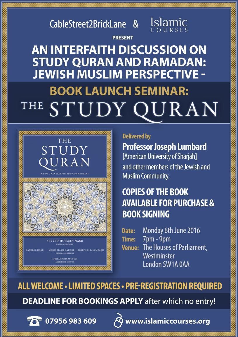 Study Quran seminar at The Houses of Parliament By paulwilliamsbloggingtheologycom on May 26, 2016 • ( 0 ) Share this:Share Click to share on Facebook (Opens in new window) Facebook Click to email a link to a friend (Opens in new window) Email Click to share on WhatsApp (Opens in new window) WhatsApp Click to share on Tumblr (Opens in new window) Tumblr Click to share on X (Opens in new window) X Like Loading...‹ Hollywood Actor is Asked About Healthy Eating, He Says Follow the Example of Prophet MuhammadArticle ‘Trinity’ in the Stanford Encyclopedia of Philosophy ›Categories: Islam