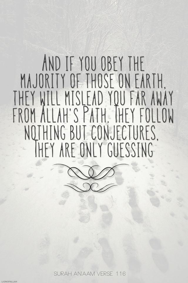 The Holy Qur’an makes clear that majority opinion is misleading. Our guidance cannot come from the ever-changing norms and values of secular democracy which only lead us away from God’s path.