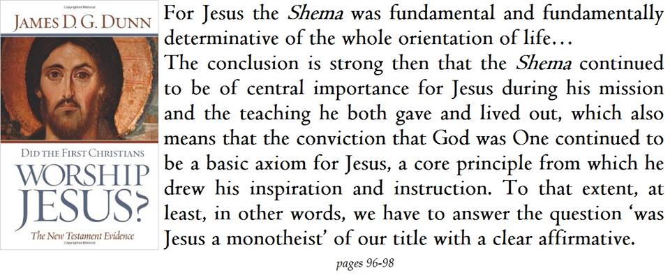 Paul Williams, I understand the post about James D.G Dunn, where he states that Jesus was a Shema believing monotheist. But the Trinitarians counter, that A) ”We also believe in the Shema” as James White Stated and that B) ”Being a Monotheist, does not exclude multi-personal Being and that being Trinitairan we accept the Shema, however we do not presuppose that the God is 1 Person, nor we pressupose that he is more than 1 person, but we interpret from WHOLE SCRIPTURE THAT God is 1 being and multipersonal”/