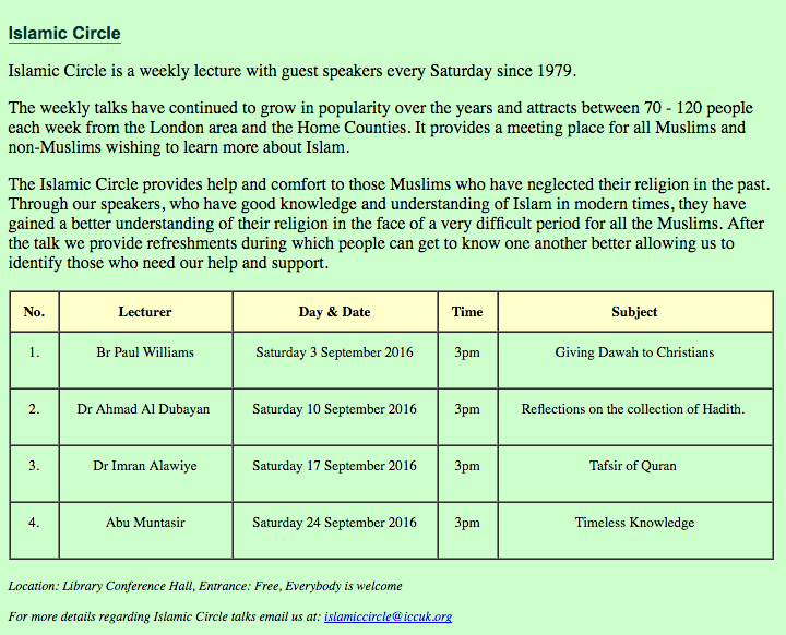 Inshallah, I will be giving a talk at Regent’s Park Mosque next Saturday on giving dawah to Christians. Everyone (Muslim and non-Muslim) is welcome to attend. For details see below.