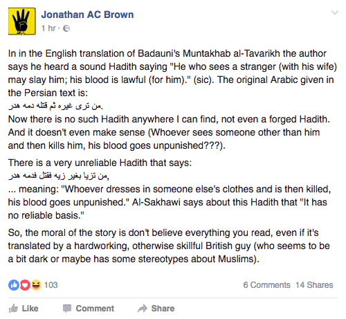 Jonathan A.C. Brown is an American scholar of Islamic studies. Since 2012, he has been associate professor at Georgetown University’s Edmund A. Walsh School of Foreign Service. In 2014, he was appointed Chair of Islamic Civilization. He is the editor in chief of the Oxford Encyclopedia of Islam and Law.