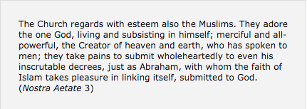 Official Catholic Church teaching: Muslims worship the same God whom Christians and Jews worship