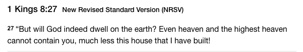 12 Then Solomon said, “The Lord has said that he would dwell in a dark cloud; 13 I have indeed built a magnificent temple for you, a place for you to dwell forever.”