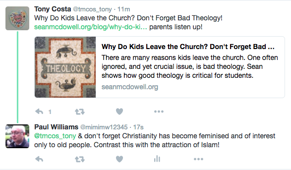 “Why do kids leave the Church? Don’t forget bad theology.”