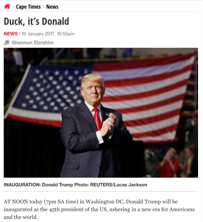 How the world reported that inauguration By paulwilliamsbloggingtheologycom on January 21, 2017 • ( 0 ) Share this:Share Click to share on Facebook (Opens in new window) Facebook Click to email a link to a friend (Opens in new window) Email Click to share on WhatsApp (Opens in new window) WhatsApp Click to share on Tumblr (Opens in new window) Tumblr Click to share on X (Opens in new window) X Like Loading...‹ A beautiful mosqueBiblical marriages were considerably more diverse than one might expect ›Categories: News, Politics