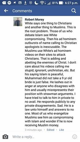 “most of us who evangelize Muslims…wonder if he is now receiving Muslim money”