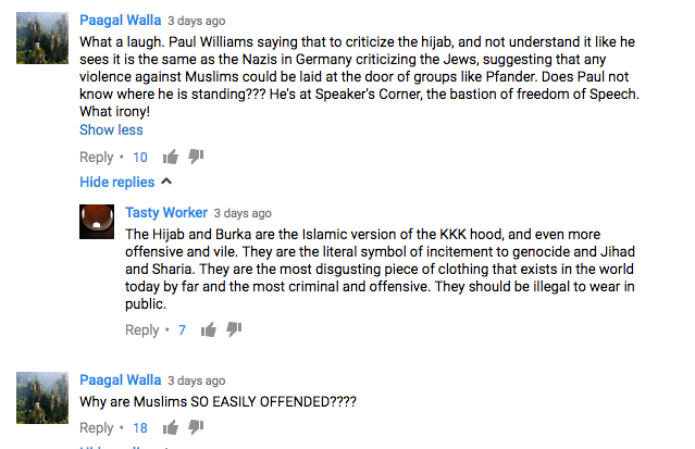 Last Sunday at Speakers Corner I confronted Lizzie and Jay Smith, two Christian missionaries who target Muslims for conversion to fundamentalist Christianity. I accused them (and the work of their co-religionists) of inciting hatred against Muslims in London by their incendiary rhetoric and lies about Muslims and Islam. With the rise of anti-Muslim and fascist movements throughout Europe the hate group they belong to (called ‘Pfander’) is throwing oil on the fire. Paagal Walla (see below) doesn’t represent my criticism of Jay Smith and his followers fairly or accurately (I’ll let that pass) but see how Tasty Worker replies:
