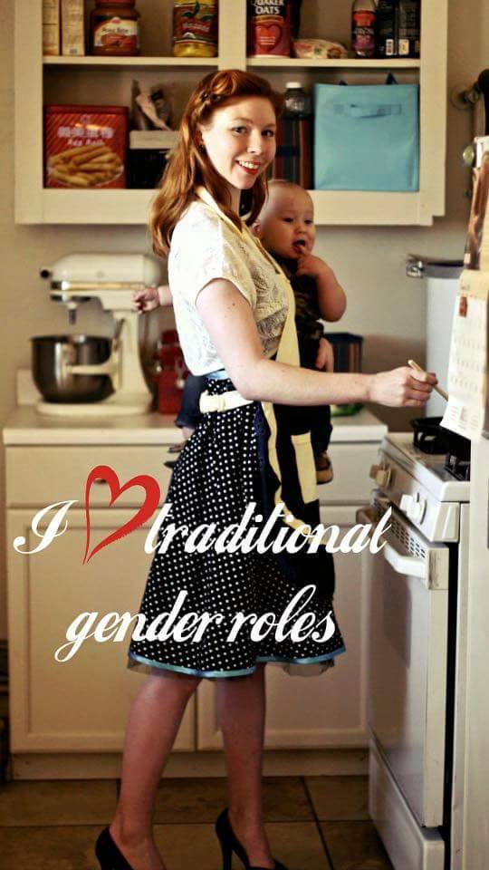 We live in a sad world where people are offended over a woman holding a child and doing house work