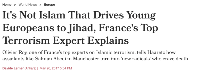“The large majority of al-Qaida and Islamic State jihadis, including the Manchester attacker Abedi, commit suicide attacks not because it makes sense strategically from a military perspective or because it’s consistent with the Salafi creed,” Roy says. “These attacks don’t weaken the enemy significantly, and Islam condemns self-immolation as interference with God’s will. These kids seek death as an end-goal in itself.”