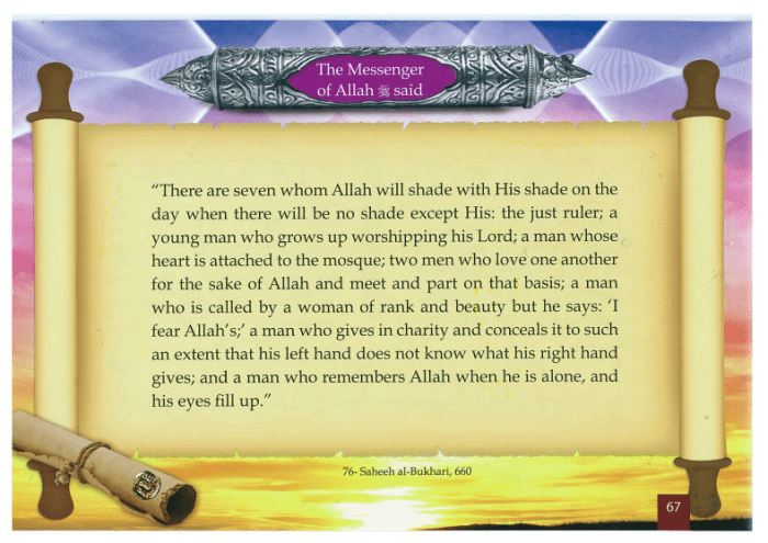“There are seven whom Allah will shade with his shade on the day when there will be no shade except his”