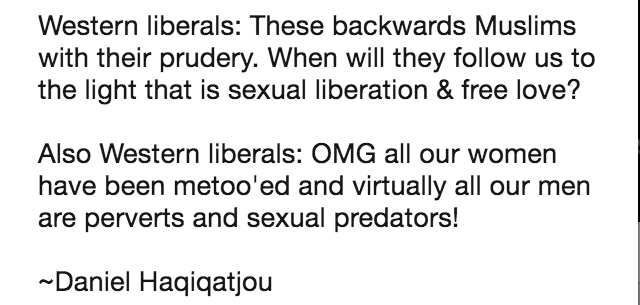 1. I still hug (non-Muslim) men that are not mahram when I hang around Catholics. I am also thankful I don’t live in a jurisdiction where “khalwat” laws (prohibiting “close proximity” between the opposite sex) are enforced.