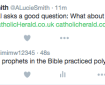 The background to this tweet concerns ongoing arguments in the Roman Catholic church about Pope Francis seeming to allow remarried Catholics to receive holy communion (which is contrary to traditional church teaching). Why not polygamists? These marriages were acceptable in the Bible… Read More ›