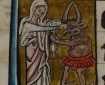 A 13th Century English manuscript showing the Blessed Virgin punching Satan out.