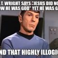 The great Christian Biblical scholar Tom Wright actually wrote this in his book Who Was Jesus? I recall being stunned when I first read it as a Christian. As Spock, son of Sarek, says: Highly illogical.