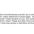 Christians at the time of Papias believed the Paraclete to be a human being (a prophet) not the Holy Spirit: ‘Church Fathers like Papias heard of wandering prophets who drew crowds from Europe to Asia Minor, claiming to be the… Read More ›